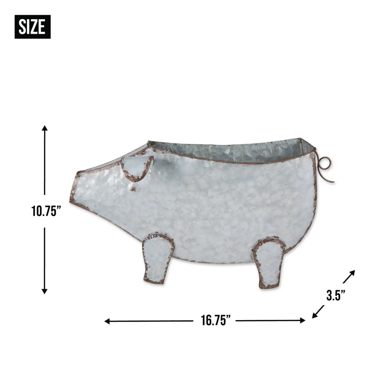 • This adorable galvanized pig wall planter is made of iron and galvanized metal; This charming piece will add charm to any garden or indoor space